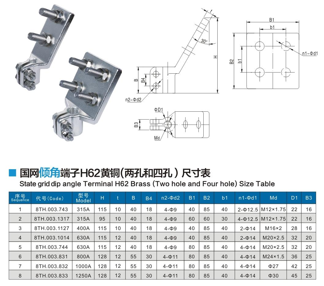 國(guó)網(wǎng)傾角端子H62黃銅(兩孔和四孔)