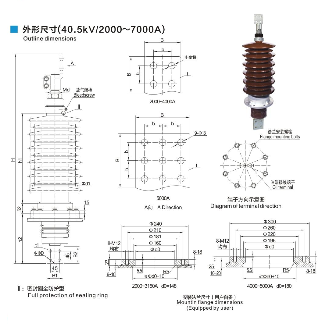 鋁法蘭瓷套管40.5kV/2000~7000A穿桿式套管