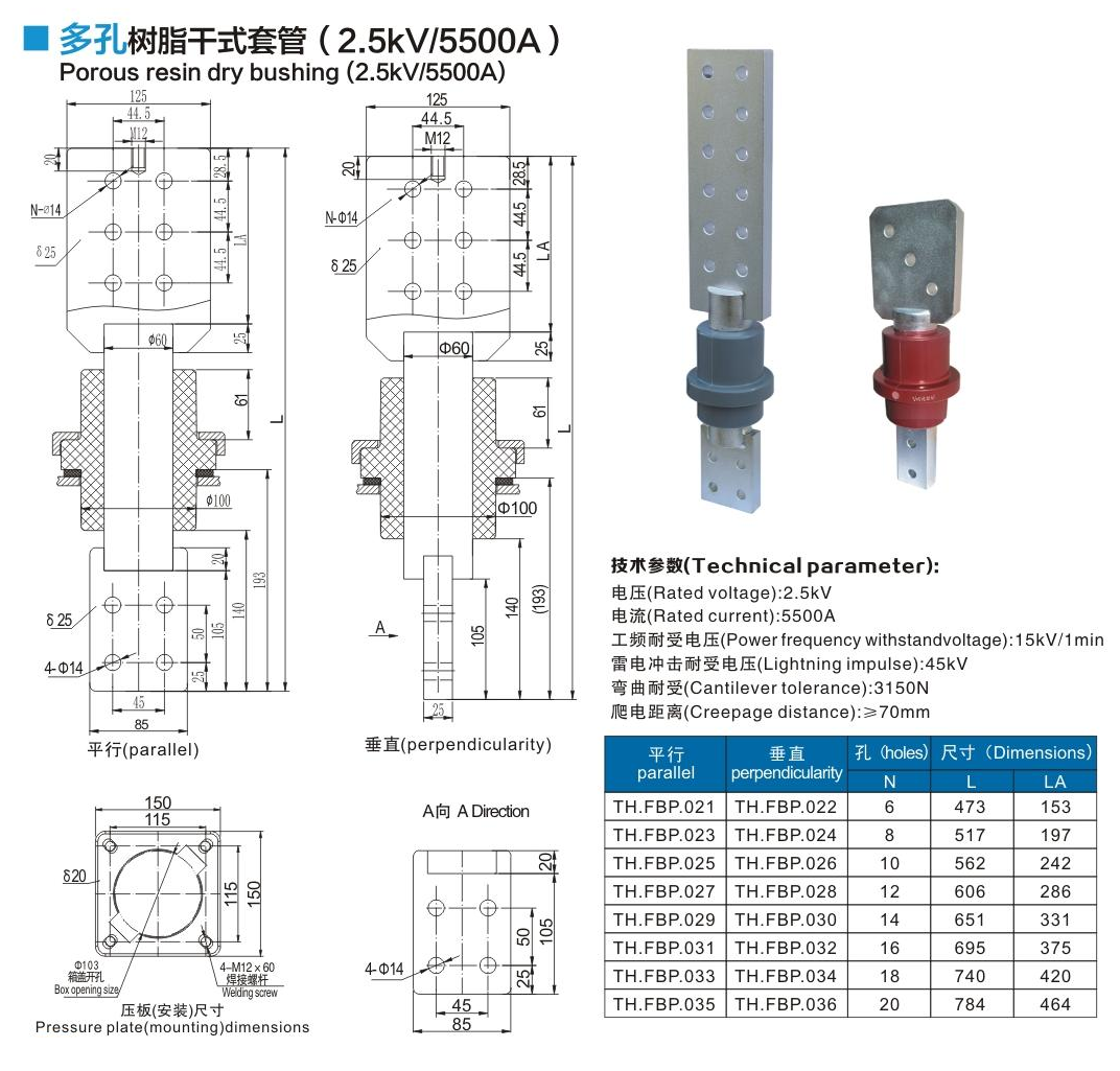 多孔樹脂干式套管2.5kV/5500A