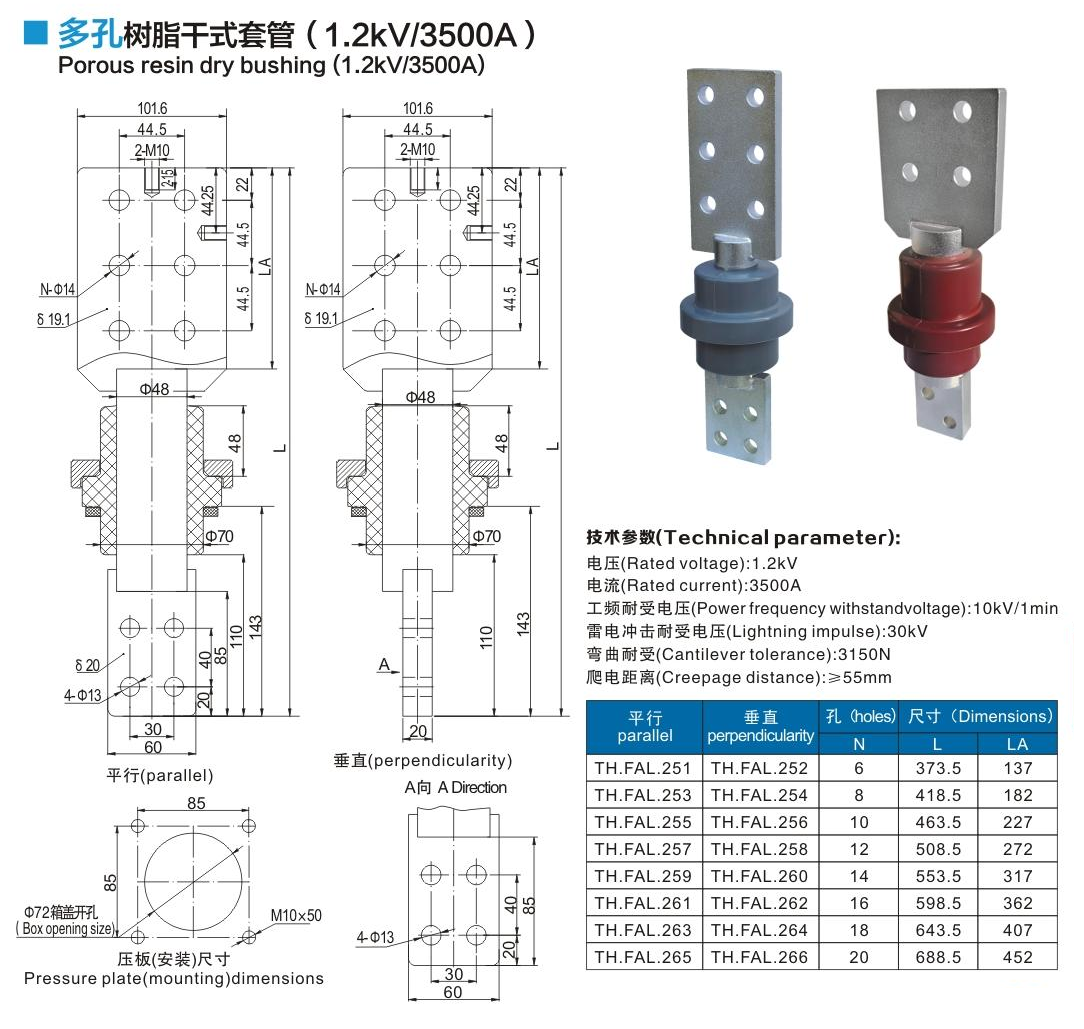 多孔樹脂干式套管1.2kV/3500A