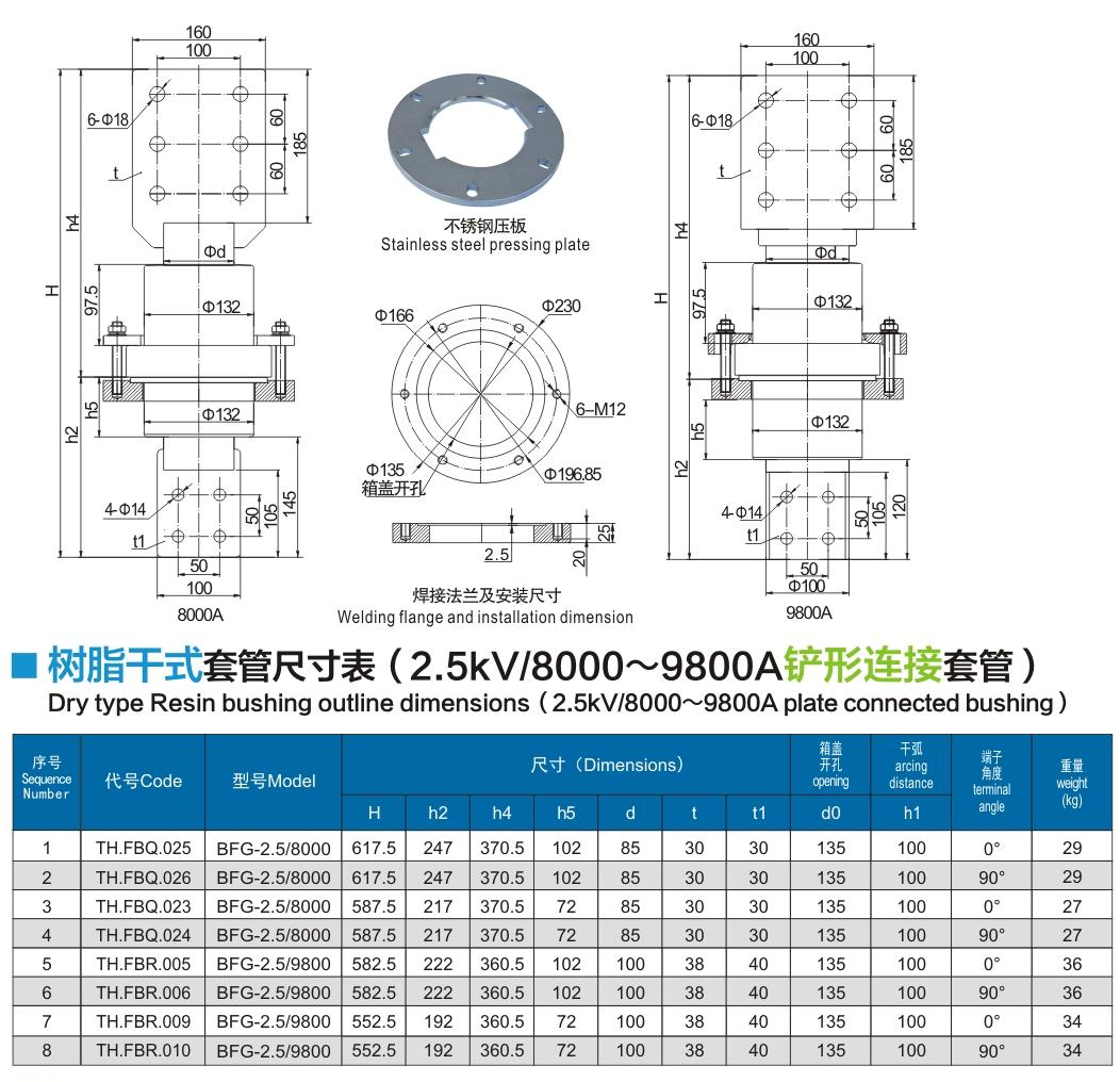 樹脂干式套管2.5kV/8000~9800A鏟形連接套管