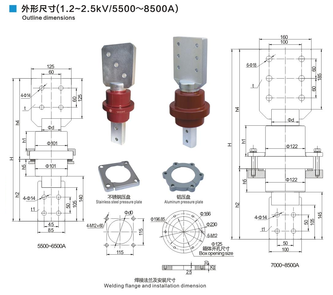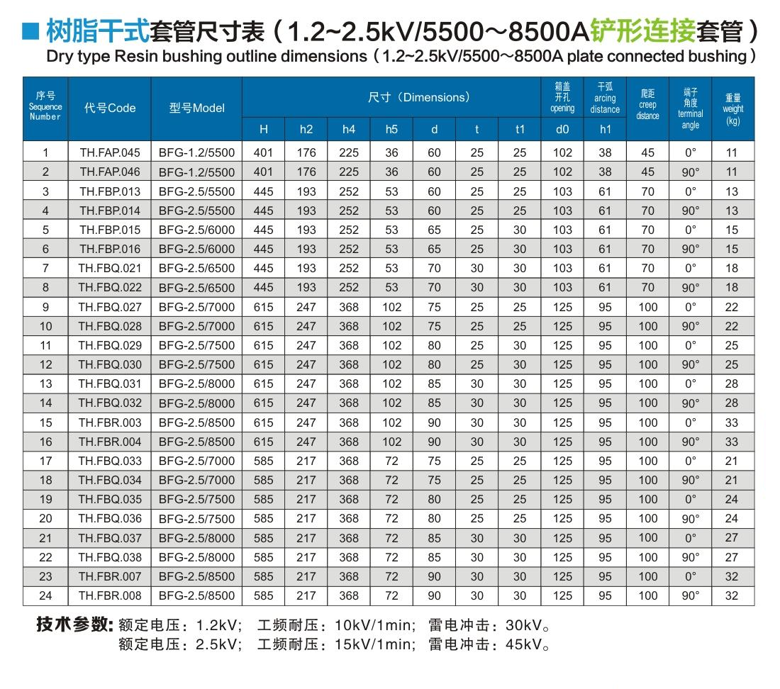 樹脂干式套管1.2~2.5kV/5500~8500A鏟形連接套管
