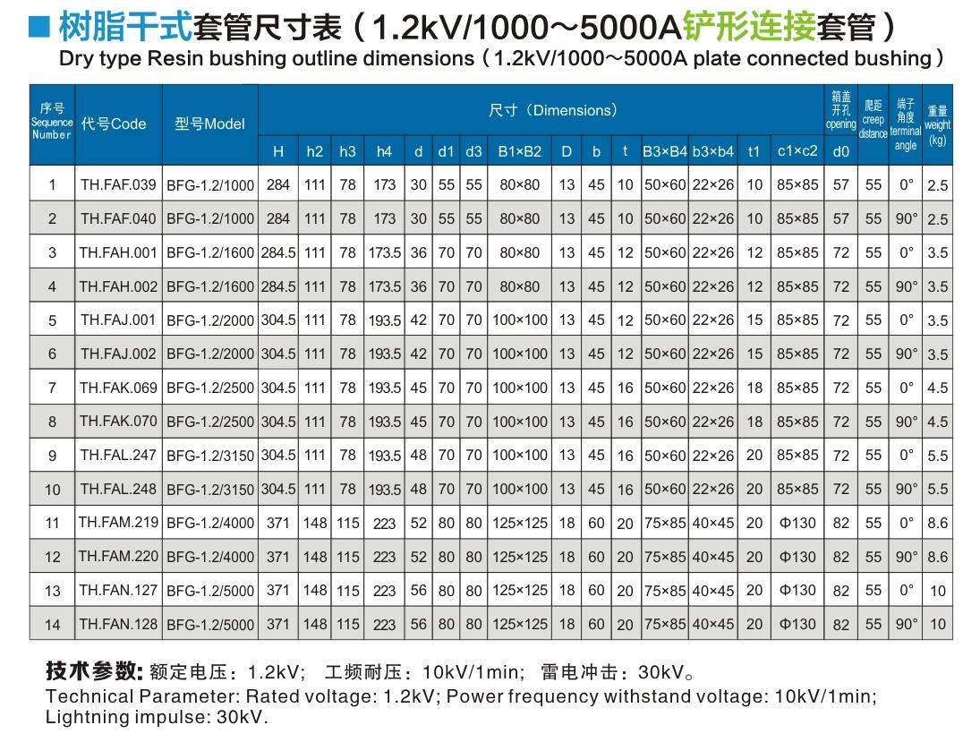 樹脂干式套管1.2kV/1000~5000A鏟形連接