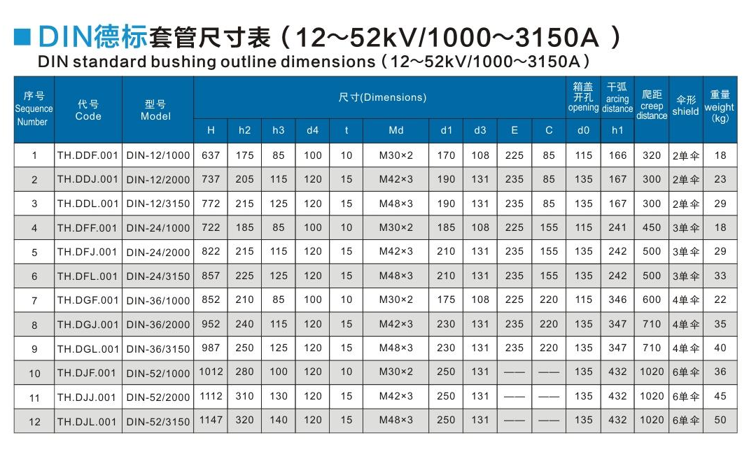DIN德標套管12~52kV/1000~3150A