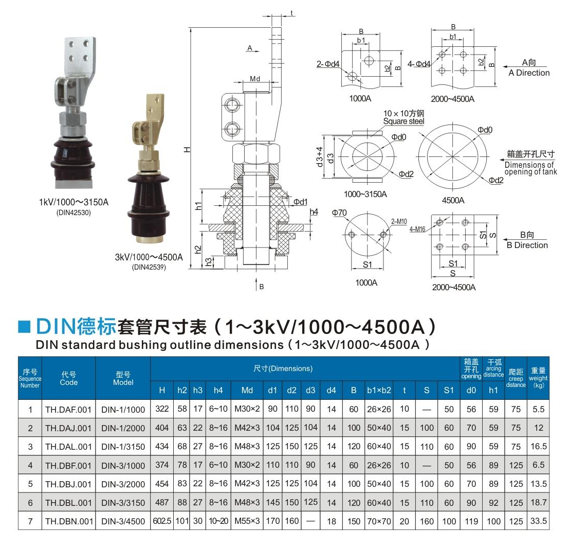 DIN德標(biāo)套管1~3kV/1000~4500A