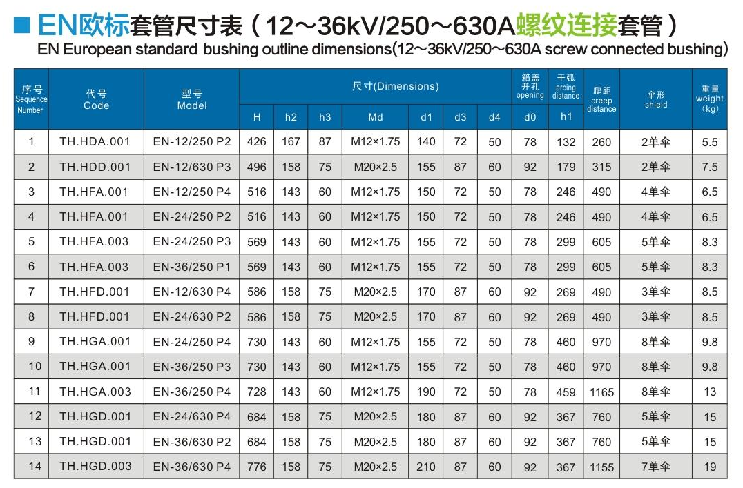 EN歐標套管12~36kV /250~630A螺紋連接套管